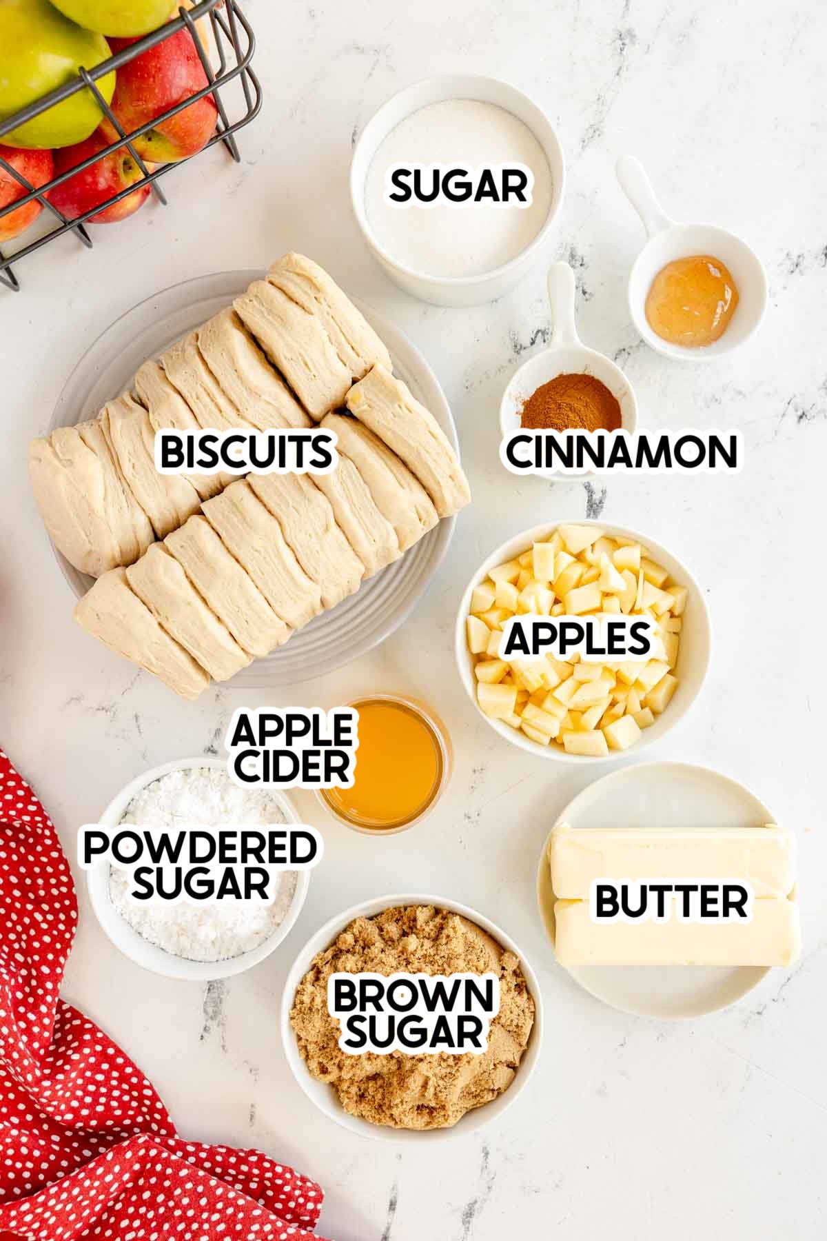 - Fresh apples – if you want the apple flavor without actual chunks of apple, you can leave out the fresh apples and just add more apple pie filling. Not as good in my opinion, but I know not everyone likes chunks! Also, I like to use apples that hold their shape like Honeycrisp and Granny Smith – you could even do a combination if you want!