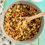 We love making a big batch of this to eat throughout the week! To store, just put the leftover fried rice in an airtight container and keep it in the refrigerator for up to five days.