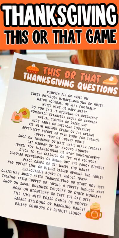 I love taking those this or that quizzes out there and thought it’d be fun to turn some Thanksgiving this or that questions into one of the best Thanksgiving games for your whole family to play together!